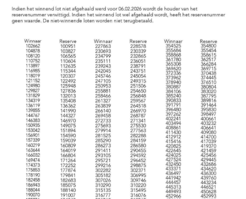 👇 Hieronder vind je de lijst met de winnende lotjes.